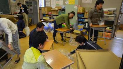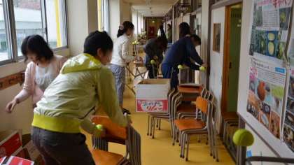 3日(水)、1年生の教室用に新しい机、いすの準備をしました。今年度入学の1年生は61名です。例年の倍以上とあって、机といすを新調しました。包装を取り外すのは大変でしたが、子どもの数が増えるということもあって、なんとなくうれしい作業ですね。