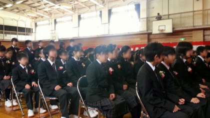 9日は区内の公立中学校で入学式が行われました。船橋希望中学校でも真新しい制服に身をつつんだ新入生が、入学式を行いました。今年度の新入生は213名で6クラスです。終始落ち着いた態度で、しっかりした1年生という印象をうけました。本校卒業生も緊張感の中にも、希望を胸にきらきら輝く目をして、式の最中しっかりと話を聞いていました。