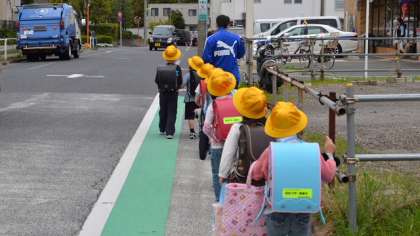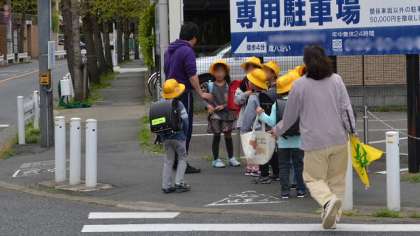 1年生は今日は3時間目までで下校。しばらくは方面別に集団下校します。まだ慣れていない行き帰りの道。途中で「どっちだっけ?」と不安になる子もいましたけど、大丈夫です。しばらくの間は職員が責任をもって送り届けますからね。