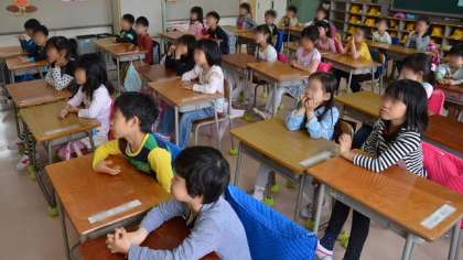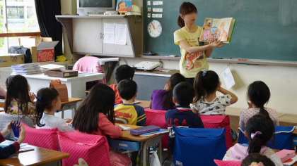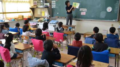 週3日間の読書タイムのうち、水曜日は読み聞かせ等を行うことができる日として設定しています。17日は1年生の教室で、担任が読み聞かせをしていました。