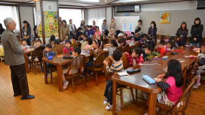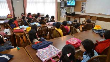 20日(土)、今年度最初の新寺子屋です。2年生が学級閉鎖中ですので、1年と3年の参加でスタートしました。今日は保護者の皆さんもたくさんお見えになって、ランチルームは満員です。講師の紹介をした後、3年生は2階理科室で、1年生はそのままランチルームで学習スタートです。最後は再びランチルームに合流して、ビデオ鑑賞をして今日の新寺子屋は終了です。お休みの土曜日ですが、勉強やる気まんまんの子どもたちです。