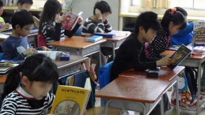24日、朝の読書タイムのようすです。今年度から火、水、木曜日の朝に行っている読書タイムは、子どもたちの間ですっかり定着してきました。自分の好きな本を静かに落ち着いて読んでいます。