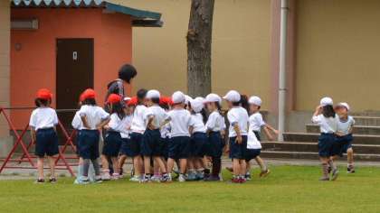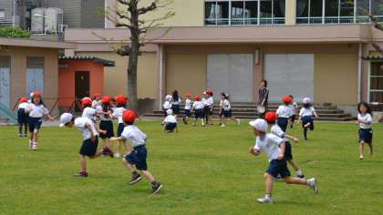 25日、1年生の体育の様子です。最初はオニごっこをして、校庭と芝生を所狭しと元気いっぱい走り回りました。その後、基本的な行動で集合・整列を練習しました。だいぶじょうずに整列できるようになってきましたが・・・もう一息というところですね。がんばりましょう。