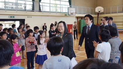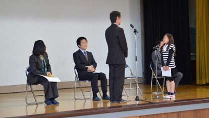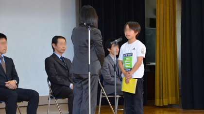 26日6校時、体育館で離任式を行いました。3月まで希望丘小学校で勤務し、退職したり、異動して4月から新たな学校で勤務している4名が、忙しいところ学校にかけつけて下さり、子どもたちとお別れの会に臨みました。入場の時から子どもたちの暖かい拍手とまなざしが4人にそそがれました。代表児童は、原稿なしで相手をしっかり見て、離任した先生に感謝の言葉を述べ、全校児童が書いた手紙を手渡しました。それに応えて、先生方から子どもたちへの心のこもったメッセージを贈っていただきました。