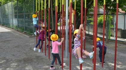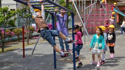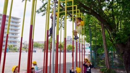 5月1日(水)、中休みの1年生の様子です。学校生活に慣れてきて元気な1年生。休み時間も様々なことにチャレンジしています。うんていで、端から端までできる子もいます。登り棒でてっぺんまでいける子もいます。「すごいねえ」とほめると得意満面の笑顔が返ってきます。何度もチャレンジしてがんばる子もいます。
