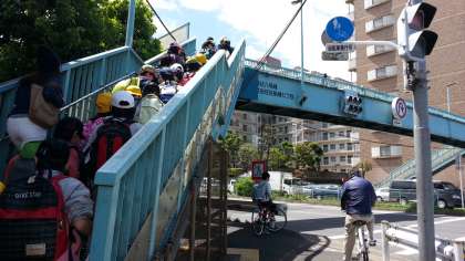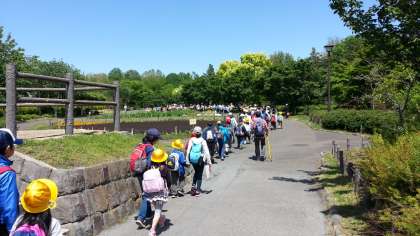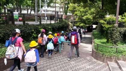 交通ルールを守って仲良く歩いて蘆花公園へ