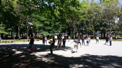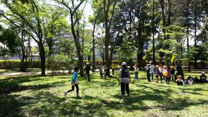 班ごとに遊び始めました。6年生の班長さんが一生懸命です。みんな元気に遊んでいます。