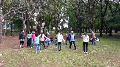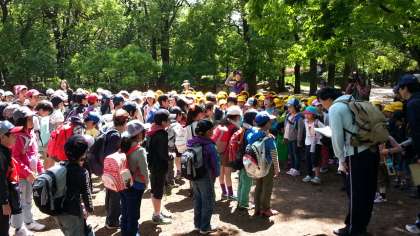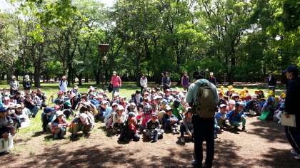 昼食後、今度は学年ごとに集合して、1、2年生は帰校します。向かい合ってさようならをしました。そのあとは、3、4、5、6年ごとに学年遊びの時間です。