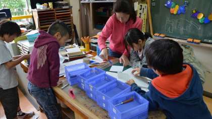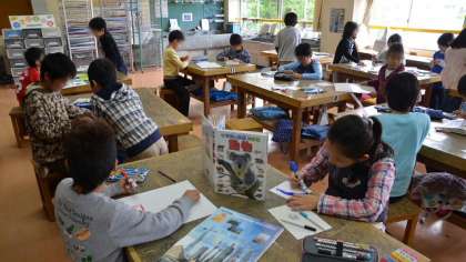 2日(木)1・2時間目、4年生の図工のようすです。3時間目からは「希望っ子班遠足(全校遠足)」ということでちょっと慌ただしかったのですが、子どもたちは短い時間で集中して作品作りに取り組んでいました。