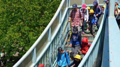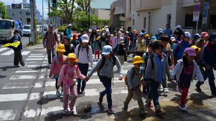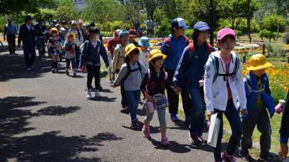 学校から蘆花公園への道では、手をつないだ高学年が低学年を気遣う場面が随所で見られました。まるで兄弟姉妹のようですね。
