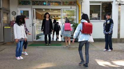 8日(水)、昨日から始まったあいさつ運動2日目のようすです。8時5分の正門の開門と同時に1年生はそのまま玄関へ、そして2年生以上は玄関前で待機ます。8時10分に看護当番のあいさつと同時に児童が一斉に校舎に入ります。玄関で待ち受けるあいさつ当番の児童は玄関の中に並び、入ってくる子どもたちに元気よくあいさつをします。その後は玄関前に場所を移し、登校してくる子どもたちにていねいに笑顔であいさつをしています。