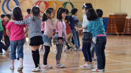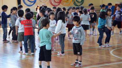 8日1校時、体育館で1・2年生が交流遊びをしました。これは、明日9日の5校時に行う、1年生活科の学校探検で、2年生が案内役を務めるため、今日は交流を深めておくという目的があります。いつもはどちらかというと高学年にサポートされる側の2年生が、今日はお兄さんお姉さんの顔つきで1年生をサポートしながら一緒に遊びました。最初に「じゃんけん列車」を行い、2年生は1年生を気づかい声をかけながら遊んでいました。
