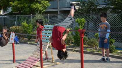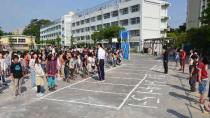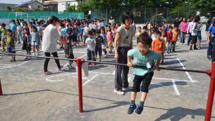 10日(金)朝、校庭で鉄棒集会を行いました。本校では時期を決めて、鉄棒や持久走などの重点取り組みをしています。今回は来週からの「鉄棒週間」にむけて、子どもたちへ意識付けをするために行いました。簡単な準備体操の後、はじめに体育委員の児童が鉄棒の技の見本を見せてくれました。見事な技に、みんなから大きな拍手がわきおこりました。続いて、全員がリレー方式で鉄棒に挑戦です。