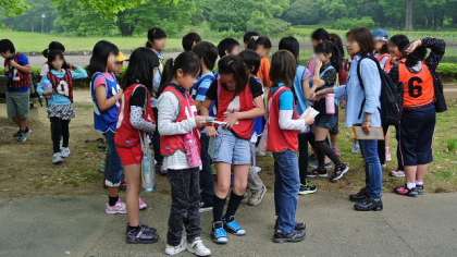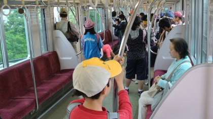 13日、5年、昭和記念公園への遠足のようすは、速報でお知らせしましたが、遠足のようすをもう一度振り返って、ハイライトシーンをお届けします。電車の中で、空席があってもできるだけ座らずに静かにすごす子どもたち。ホームでも落ち着いて行動できました。公園に着いてグループ行動前の子どもたち。ビブス(ランニングシャツのようになっているゼッケン)を身につけて気合い十分。