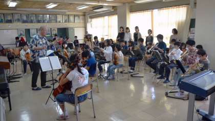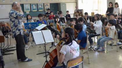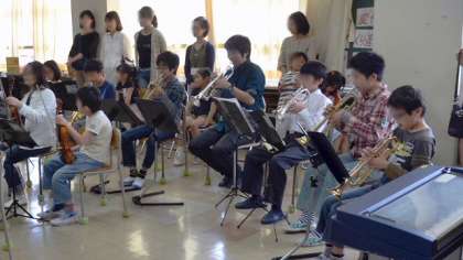 後半は4階の音楽室に集まって全体練習です。こうして講師の先生の熱心な指導で、初めて学期に触れる子も、安心して活動することができます。学期も貸し出しがありますので、参加希望の方はぜひお問い合わせ下さい。