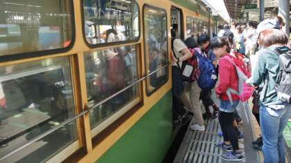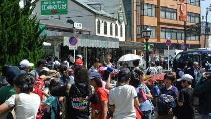 帰りは鎌倉の駅から江ノ電で藤沢へ行き、千歳船橋まで小田急線で帰ります。江ノ電の車両は、たまたま昔の雰囲気の車両で、子どもたちは興味津々でした。