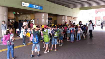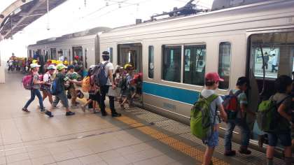 23日は、1・2年生の遠足です。8時45分に校庭に集合して、出発の式をしました。千歳船橋の駅まで歩いて行き、電車で向ヶ丘遊園まで向かいます。天気に恵まれ、子供たちも元気です。