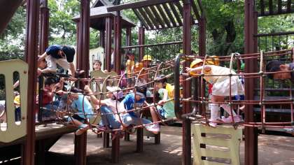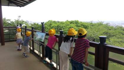 桝形山公園で、1、2年一緒のグループで楽しく元気に遊びました。