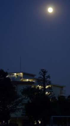 24日夜、ふと外を見ると東の空にきれいな月が昇ってきていました。満月かなと思って写真を撮ってみました。すると・・・左の下側がちょっと影になっているのがわかりますか。調べてみるとやはり月齢14でした。月齢が15で満月なので、明日は満月です。皆さんも、たまには夜の空を見上げてみませんか。