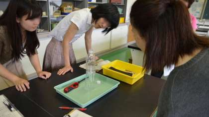 研究授業の後で、教員の理科の研修も行いました。ものの燃焼について、改めて教員自身の理解を深め、さらに、授業で使う器具や実験方法に習熟することを目的に、真剣に実験に取り組みました。写真はその時のようすです。理科の研修の後、ランチルームに会場を移し、今日の授業についての話し合いを行いました。教員も日々勉強し、向上心をもって授業に向かっているという努力を、ぜひ皆様にもご理解いただければ幸いです。特に、今年度は東京都の「理数フロンティア校」に指定されたこともあり、教員は真摯に理科・生活科の授業の研究に取り組んでいます。