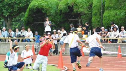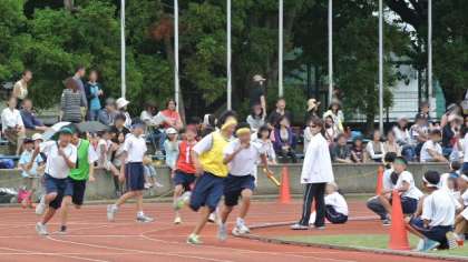 続いて2年生全員でバトンをつなぐ「全員リレー」です。走るのが苦手な子も得意な子も全力で走り抜ける姿がすがすがしく感じました。最後は接戦になり、本当にクラスのみんなが力を合わせて最後までがんばったことがわかりました。