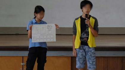 最後に児童会運営委員が、希望っ子まつりのときのお店の回り方について説明しました。スタンプカードをもって回ります。お店は,学校公開でいらっしゃった保護者・家族の皆さんや、地域の皆さんも参加できます。スタンプカードは、受付でお渡ししますが、ホームページの学校公開のページにも掲載しています。会場など参考にしてください。
