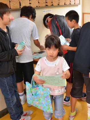 希望っ子まつりでは、校舎内に置かれたスタンプを集めるのも楽しみです。残さず押すと「40しゅうねんおめでとう」と出来上がるようになっています。みんな夢中になって集めていました。スタンプは図工専科教諭の自作です。