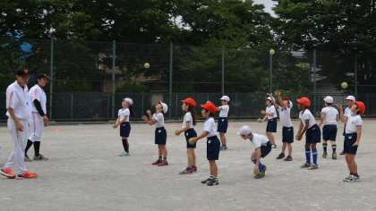 2時間目は3年生が同じくティーボール教室の体育授業を行いました。今年度初めて授業を受ける3年生は、おもに投げる、受けるなどのボールの扱い方を習いました。明日11日は、3・4年生とも今日の続きをします。3校時が4年生、4校時が3年生です。明日はいよいよゲームです。興味のある方はぜひ学校に参観においでください。