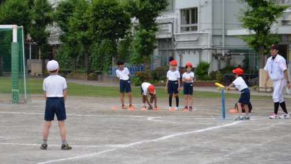 授業紹介 3年体育 ティーボール1