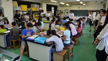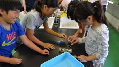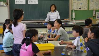 グループごとに話し合って、電磁石を使って強さや性質を調べていきます。その後で、わかったこと調べたことを全体で話し合い、ミニホワイトボードに担任が書いて黒板に掲示し、これから実験で確かめたいことをまとめていきました。最後にこの時間の振り返りを書いて、授業が終了しました。この授業をするまで、高学年部会の教員が何回も集まって検討したり、教材について準備をしてきました。事物現象に向き合った子どもたちが、自分なりの考えをもって活動し、学習のテーマをつくりだしていくという、提案性のある授業でした。
