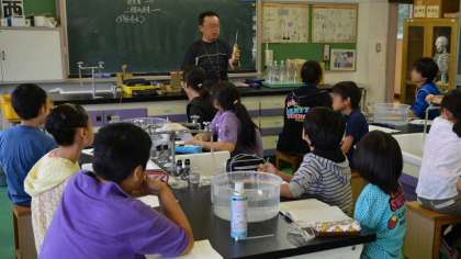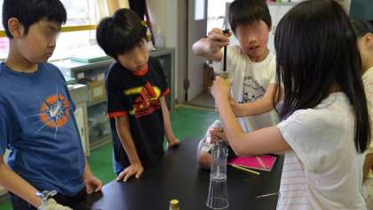 13日(木)、今日は学校公開週間最終日でした。6年理科のようすです。先日研究授業で行った最初の実験について、気体検知管(気体の成分を調べる道具)を使ってもう一度確かめるという学習です。ふたを開けているのに、ペットボトルの中でろうそくの火を燃やすと消えてしまうということについて、ろうそくの火が消えたあとの、中の酸素と二酸化炭素の割合を測定して確かめ、その結果から考えました。グループ実験で、相談しながらしっかり実験ができていました。