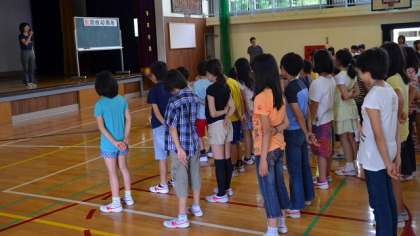 6月17日(月)、今日は希望丘小学校の「開校記念日」です。先々週の土曜日に「開校40周年記念集会」を行い、記念式典は11月9日(土)に行うため、今日は特別な会は行いませんでしたが、朝会で開校記念日について話しをしました。続いて今週から始まるプール指導の注意を、担当の教員がスライドを使って行いました。ちょっと蒸し暑い体育館でしたが、映し出されるスライドをしっかり見て、準備や体調管理、プールに入るときのルールなどを真剣に聞くことができました。手前は6年生ですが、聞く姿勢もいいですね。