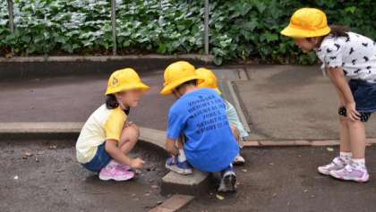 「なにか見つけた?」「うん、おもしろいものがあったよ」 希望ヶ丘公園で、いっぱい遊んで、いっぱい発見してきた1年生でした。