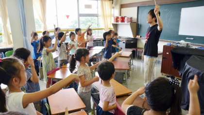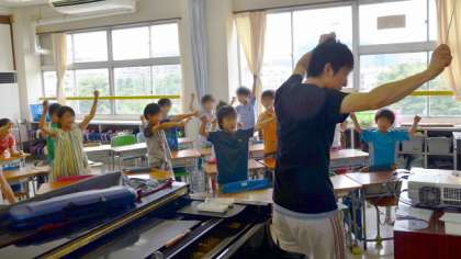 18日、2年生の音楽のようすです。「美しく青きドナウ」の音楽鑑賞です。子どもたちはみんなが名指揮者です。曲に合わせて手の振り方を変えます。フィナーレはかっこよく両手で。きまりました! 後半は鍵盤ハーモニカの練習をしました。みんな一生懸命です。