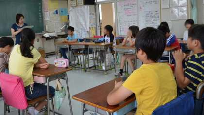 こちらは高学年5・6年生のようすです。高学年でも真剣に聞いています。