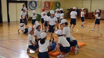 19日2校時、4年生が体育館で「復籍交流」の時間をもちました。学区域に住んでいる特別支援学校に通っている児童が、本校にも籍を置く(復籍)という制度があり、日常的に学校からの家庭向けの文書類を交換したり、行事の参観や参加をしたり、学習活動に参加したりしています。今日は、体育館で行ったゲーム活動に参加しました。4年生は2年生の時から交流活動をしているので、「○○くんのお兄ちゃん」(弟が下の学年に在籍しているので)として認識しています。同じ地域に住んでいる子として、このような機会を通じて、互いに認め合うことができればと願っています。