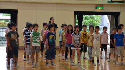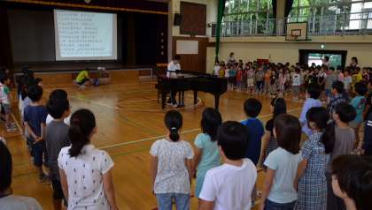 サビの部分では、1〜4年生が主旋律を歌い、5・6年生がコーラスをつけます。みんなの歌声がとけ合って美しい歌声となり体育館に響き、朝のひとときがすてきなものになりました。
