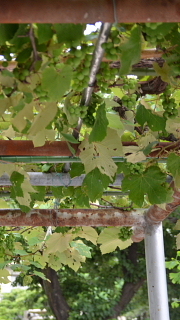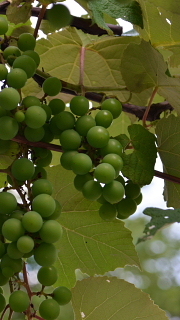 校長室前のブドウだな。今年も順調にブドウの房が育っています。たくさん収穫できそうです。