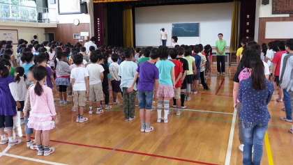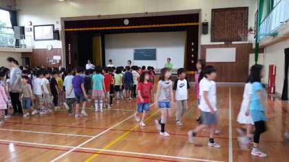 24日(月)朝会は、雨が降っていたので体育館で行いました。校長講話の後、看護当番から今週の目標について話しをして終了。子どもたちの話しの聞き方がとてもよく、落ち着いた雰囲気でスタートです。退場は音楽に合わせて行進です。これもまた、高学年が見本となるようにできているので、低学年もしっかりできています。