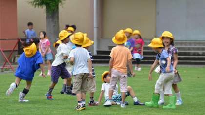 いつも元気に夢中になって芝生の上で遊んでいる1年生。そしてのぼり棒は2年生が上手です。6年生だってバスケットボールをめいっぱい楽しんでいます。よく遊べ、そしてよく学べですね。