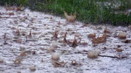 天気予報では昼頃晴れ間ものぞくはずでしたが、この時期の天気は変わりやすいですね。この雨に喜んで笑顔になっているのはアジサイと子どもたち。ランチルームで給食を食べ終えた5年生が昇降口から外を見て大はしゃぎです。雨がつくる一瞬の自然の造形もおもしろいですね。写真に撮ってみました。子どもたちが帰るころには雨も止みました。