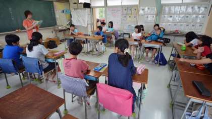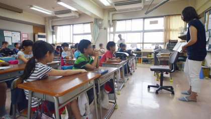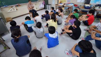 こちらは、3年、5年、6年1組のようすです。読んでくださる本も、子どもたちのようすを意識して、ふさわしいもの、興味をひきそうなものを用意してくださっています。毎回ありがとうございます。