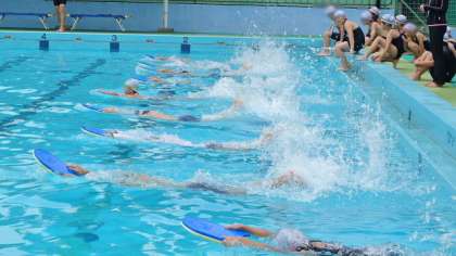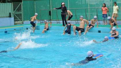 安全を祈願したセレモニーの後。さすが5・6年、早くも本格的な練習のスタートです。ちょっと肌寒いコンディションにもかかわらず、子どもたちが元気に水しぶきを上げていました。5・6年生は2学期開始早々に、水泳記録会も行います。特に6年生は小学校生活の集大成です。それぞれの目標達成のため、子どもたちは頑張っています。