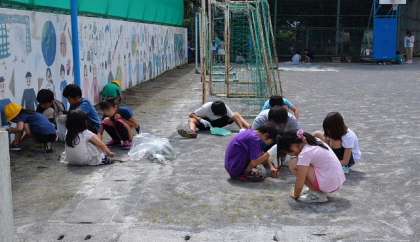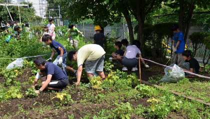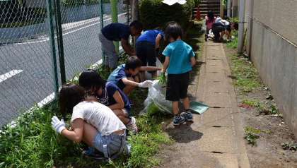 季節柄草取りが中心となりましたが、それぞれの場所で生えている草の様子も違います。体育館の裏はフェンス際に、学級園は至る所丈の高い雑草が、グランドの隅は小さい草が生えています。それぞれのところでみんな一生懸命に草取りに励みました。