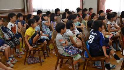 1時間半ほどの学習が終わると、1階ランチルームの1年生と合流し、アニメの名作ビデオ鑑賞です。新寺子屋の教材は講師の先生方が準備してくださっています。また、保護者の方にも当番でお手伝いしていただき、そのおかげもあって運営が軌道にのっています。子どもたちの学習習慣をつけるのが目的です。教えて貰うだけでく、出来る喜びを味わいながら、学び方を学ばせるのが目標です。これからもご協力をお願いします。