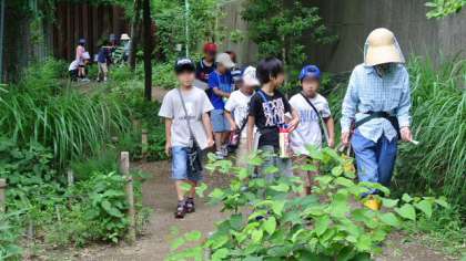 「小径の会」の皆さんに案内していただき、草花の名前や由来を学んだり、自然の見方を教えていただいたりしました。住宅地として開発され尽くしているこの地域の中で、ぽっかりと自然のままのような姿を保っている場所です。毎年3年生がこの場所を訪れ、このような経験を通して、子どもたちにとって愛着がある場所に変わり、さらに地域の誇りとなる場所となっています。