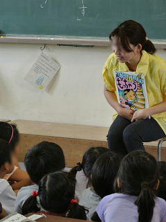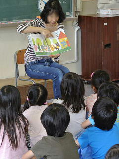 こちらは1年2組のようすです。2組も2人の保護者の方がいらして読んでくださいました。絵本の世界に引き込まれて、子どもたちの目がキラキラしています。