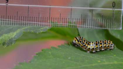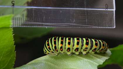もう1匹の方の幼虫です。上の写真は8日、下の写真は11日です。たった4日で体長が2倍になっているのがわかります。自然の神秘ですね。