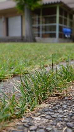 芝生の状態を点検。おおむね状態は良好ですが、この暑さが気にかかります。そんな中でキノコを発見。そして側溝のふたの間にもびっしりと芝が根付いています。早朝にスプリンクラーが自動散水しているので、回りに比べると水が補給されているからだと思います。