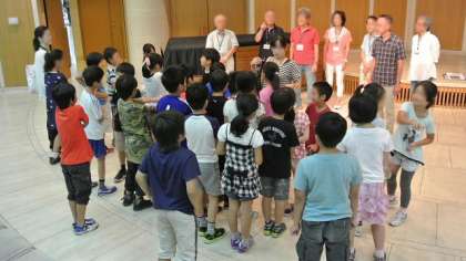 17日午前中、4年生が貸し切りバスで世田谷美術館に出かけ、美術鑑賞教室を行ってきました。ホールで館長さんから鑑賞に関するレクチャーを受けた後、6人の鑑賞リーダーさんとの出会いです。さっそく美術館の作品鑑賞に出発です。4・5人に一人の鑑賞リーダ^さんが付いてくださってていねいに説明してくださいますから、子どもたちも真剣です。